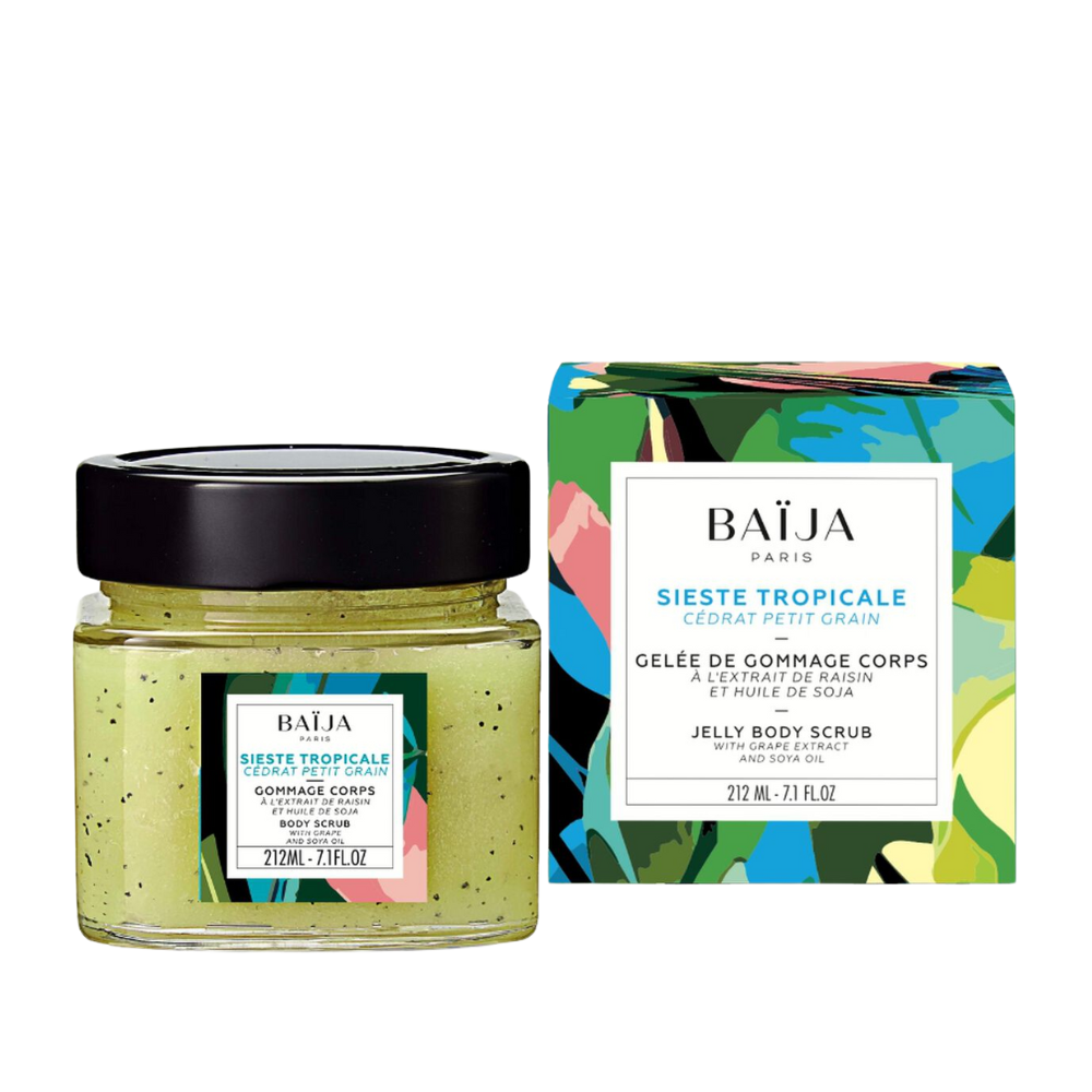 Découvrez les bienfaits du gommage Sieste Tropicale ( 212ml). Son mélange d’extraits de raisin, d’eau de fleur d’oranger, de sucre et d’huiles végétales exfolie en douceur, tout en nourrissant votre peau. Sa fragrance subtile de cédrat et de petit grain transforme chaque application en un véritable moment de détente et de plaisir, laissant votre peau douce, éclatante et délicatement parfumée.